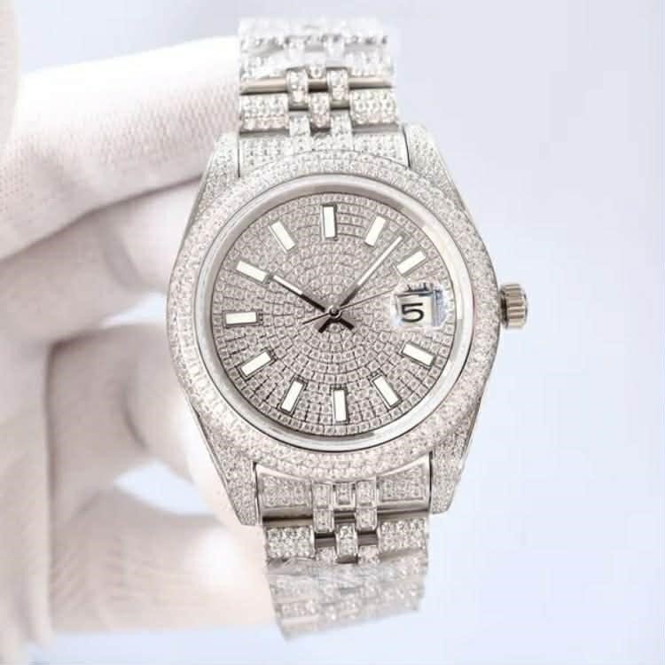 Stainless steel, sapphire glass, Swiss automatic movement, 1:1 sizing & weight, VVS Grade Moissanite stones, Waterproof, Concealed Clasp, £499 with box