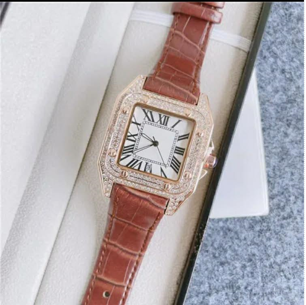 Stainless steel, sapphire glass, genuine leather, VS Grade Moissanite stones